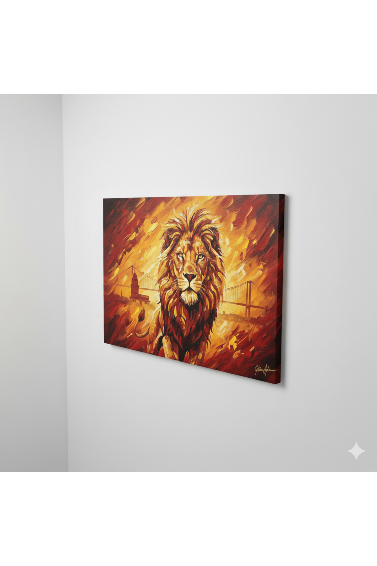 Güç ve zarafeti bir araya getiren Aslan temalı süet kumaş kanvas tablo, İstanbul’un eşsiz manzarasıyla birleşerek dekorasyonunuza benzersiz bir hava katıyor.